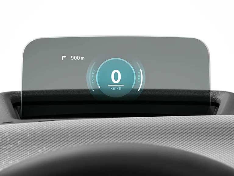 התצוגה העילית האופציונלית מספקת לכם דרך נוחה ואינטואיטיבית להציג את נתוני הנהיגה החשובים בשדה הראייה שלכם. התצוגה העילית מציגה את המידע ישירות בשדה הראייה שלכם ובכך מסייעת לכם להתרכז בדרך שלפניכם.